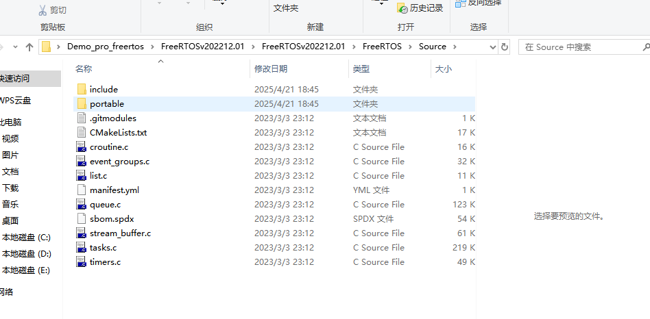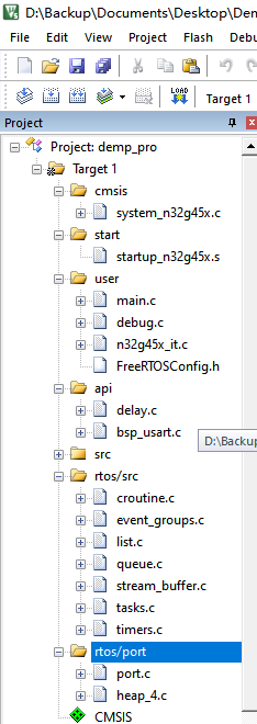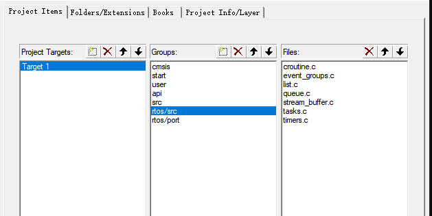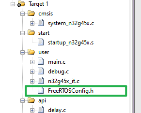 注意这里:是将整个rtos的源码放到了对应的工程文件中,在向工程中添加文件时,只添加需要使用到那一项即可。