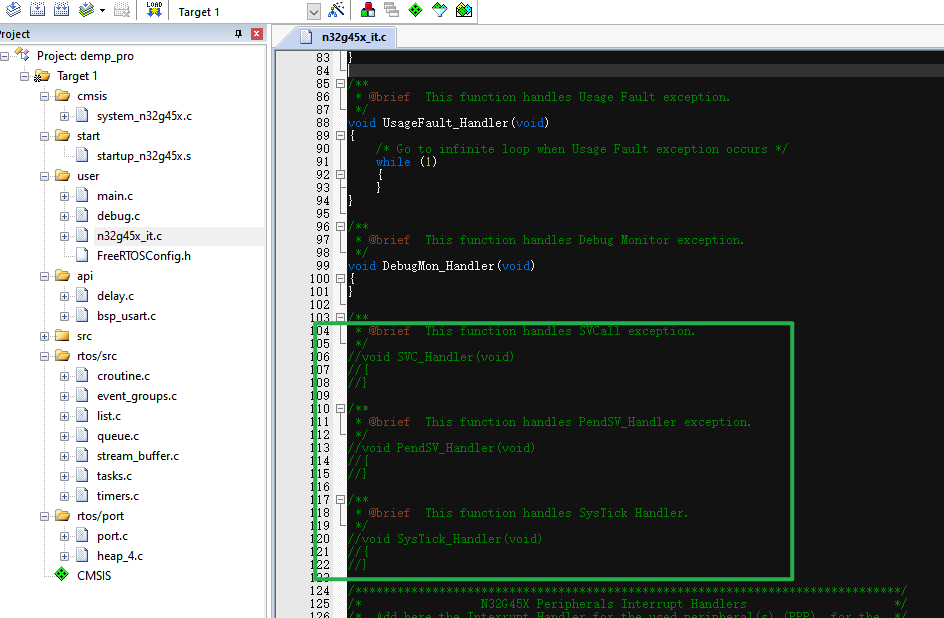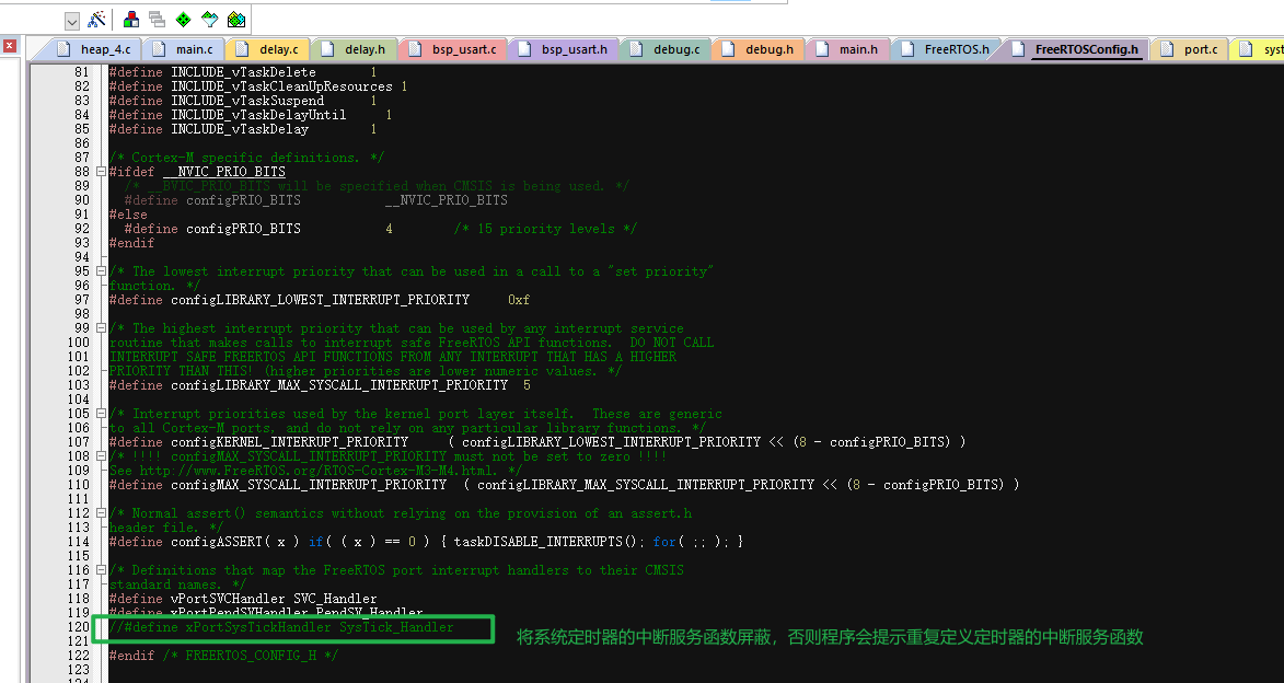 再将下图文件中的三个中断服务函数屏蔽,否则程序会报“重复定义中断服务函数”的错误