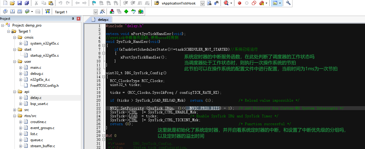由于操作系统的延时是通过系统定时器的节拍作为心跳,由此需要初始化系统定时器,并开启系统定时器的中断等,具体内容如下图: