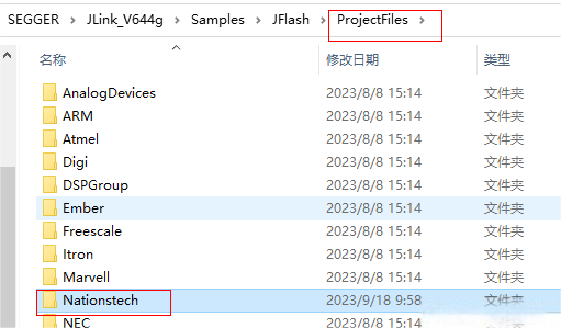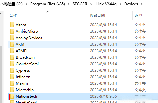 将Nationstech文件夹复制到JLink Devices文件夹。