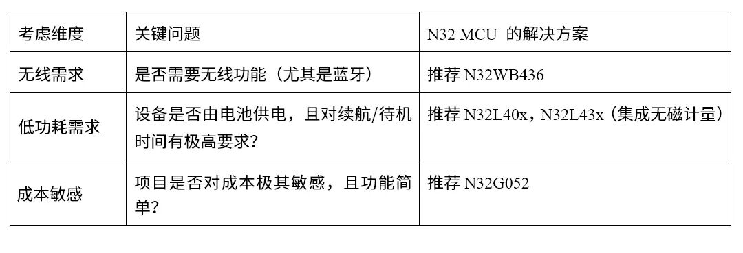 需流体计量(如智能水表)的场景,优选集成无磁计量模块的N32L43x,进一步简化系统设计。