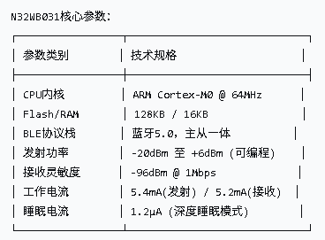 国民技术N32WB031是基于ARM Cortex-M0内核的蓝牙低功耗(BLE)芯片,集成了完整的BLE 5.0协议栈和丰富的外设资源。其核心优势在于低功耗设计、高性价比和完善的国产化生态。在BLE开发中,UUID(通用唯一标识符)配置和广播参数优化是实现设备互联与功耗控制的关键技术点。