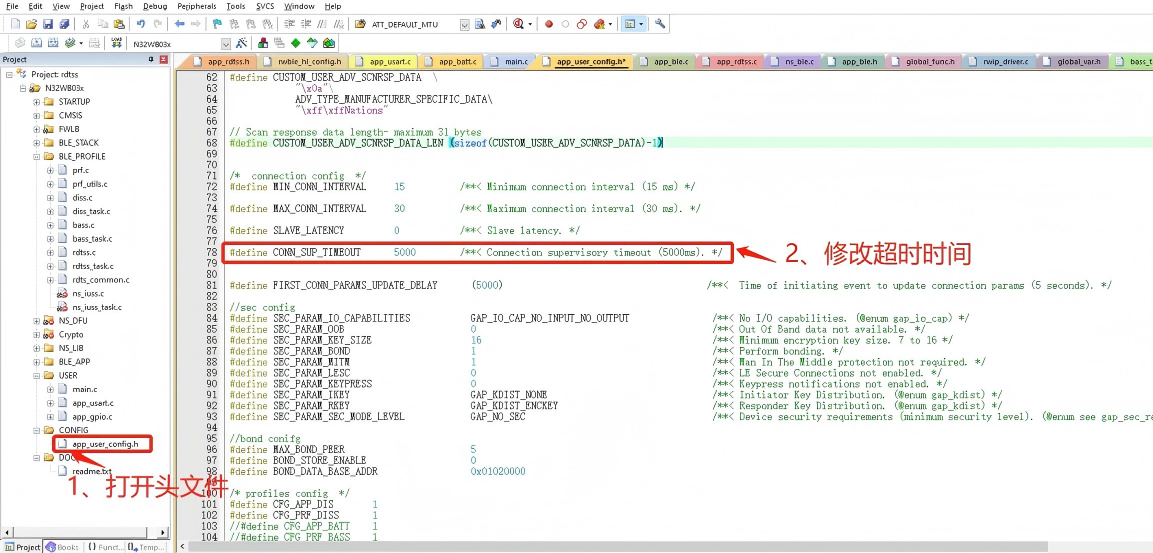 超时时间范围:10ms-32s,其必须要满足:超时时间应>=连接间隔x(从设备延迟+1)x 6,不管从设备延迟是多少,都应该保证至少6次数据发送机会。